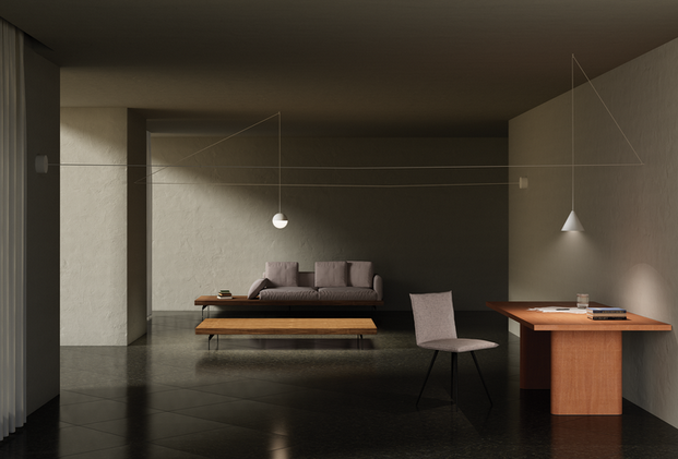 "Wenn ich im Zug sitze, sehe ich immer wieder diese Stromleitungen vor dem Fenster. Es ist so schön und poetisch, wie sie die einzelnen Masten verbinden und zugleich die Landschaft teilen. Ich wollte dies auch in die Innenarchitektur übersetzen." – Michael Anastassiades
