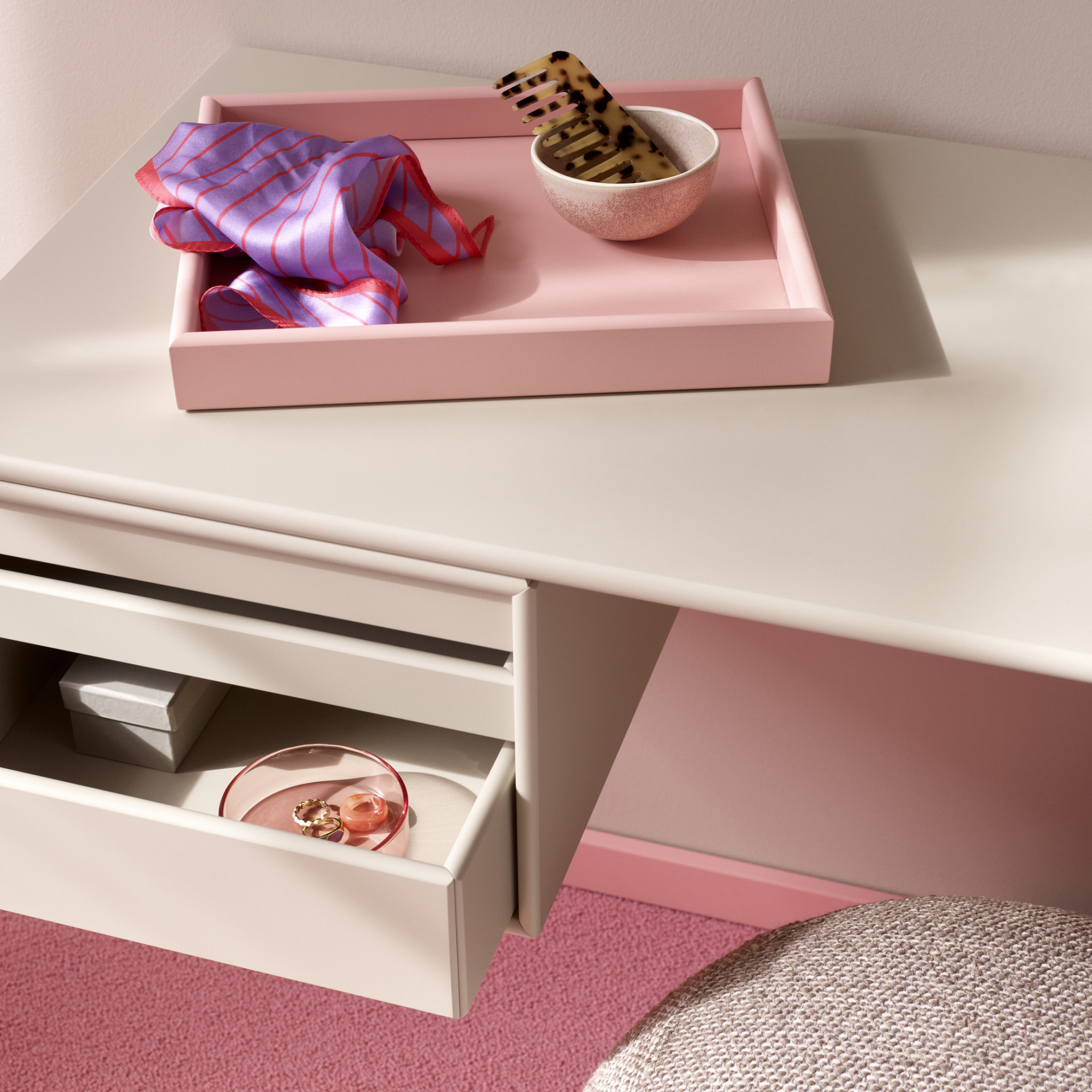 Ruby ist ein lebendiger Farbspritzer mit positiver Energie, aber in einem ruhigen Tempo gehalten. Der Rosa-Ton verbindet sich mühelos mit Oberflächen wie Fliesen, Stein oder Holz.