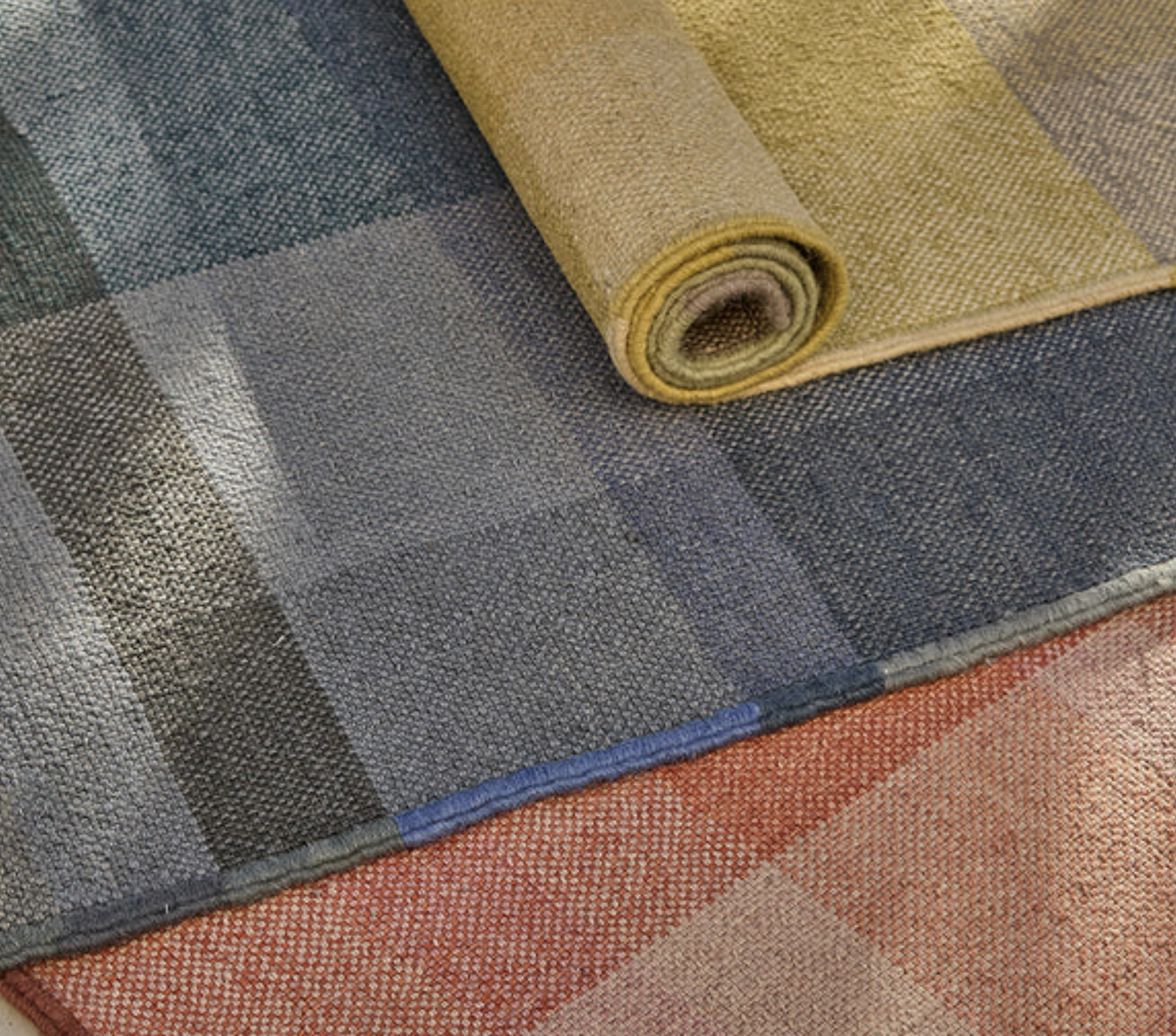 Nuance verwandelt die Ästhetik des Kelims in einen zeitgenössischen Ausdruck durch eine sorgfältige chromatische Übung, die mit Nuancen, Gleichmäßigkeit und Ähnlichkeit spielt. Er wird aus afghanischer Wolle in Kelimtechnik hergestellt und ist ein elegantes und zeitloses Stück, das sich jedem Raum anpasst. Nuance ist erhältlich in den drei Farbstellungen Limette, Denim und Koralle.